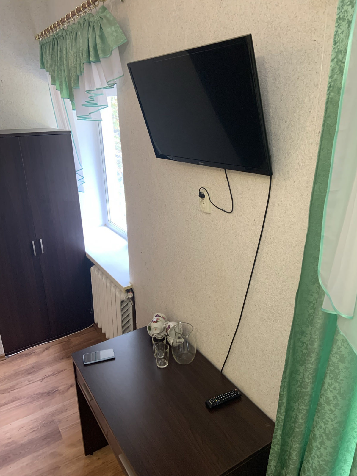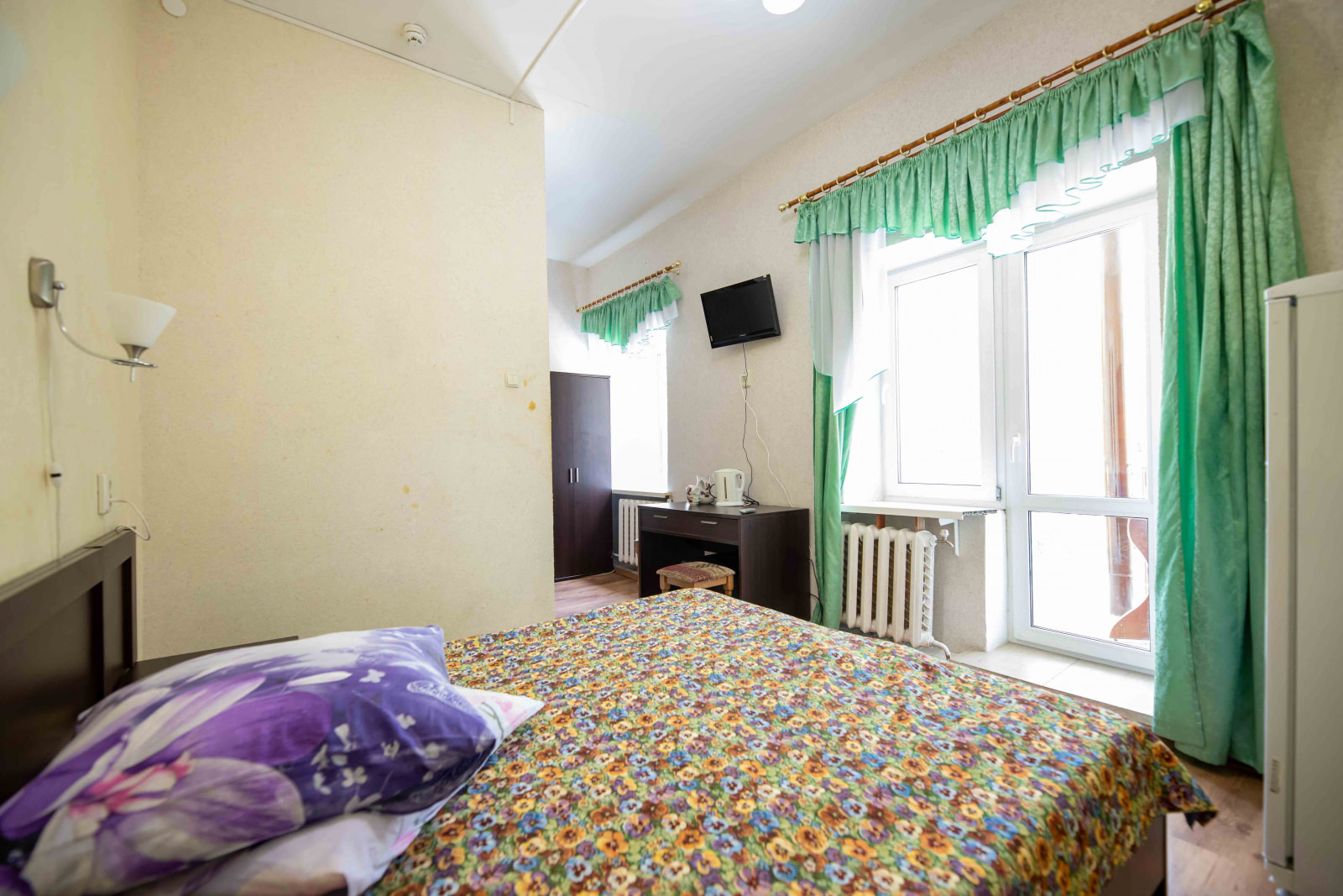 1 осн. место. 1 доп. место. Мебель: вешалка, зеркало, кровать двуспальная, прикроватные тумбочки, стол, стулья, шкаф. Оборудование: мини-холодильник, телевизор, чайный набор посуды, электрочайник. Санузел: с душем, туалетные принадлежности, фен. Сервис: Wi-Fi бесплатно, смена полотенец, смена постельного белья, уборка номера.